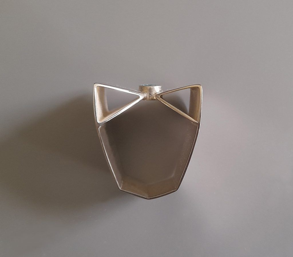 Dieser Ring ist neu und einzigartig. Er besteht aus 925 Silber und einem 5 mm rundem Apatit. Wie eine Geste, die in Metall erstarrt ist, legt sich dieser außergewöhnliche Ring um ihren Finger. Seine Form erinnert an eine Schleife.-nicht verspielt, sondern bewusst: ein Symbol für Verbindung, für das bewusste Zusammenhalten von Gegensätzen. Offen und geschlossen zugleich, leicht und doch bestimmt. Der Ring ist weniger Schmuck als Kunstobjekt am Finger. Er erzählt von Bewegung , von Eleganz ohne Eitelkeit, von einem Moment de Innehaltens. Die Schleife scheint sich selbst zu umarmen, als würde sie flüstern: Nichts muß fest sein, um Bestand zu haben.